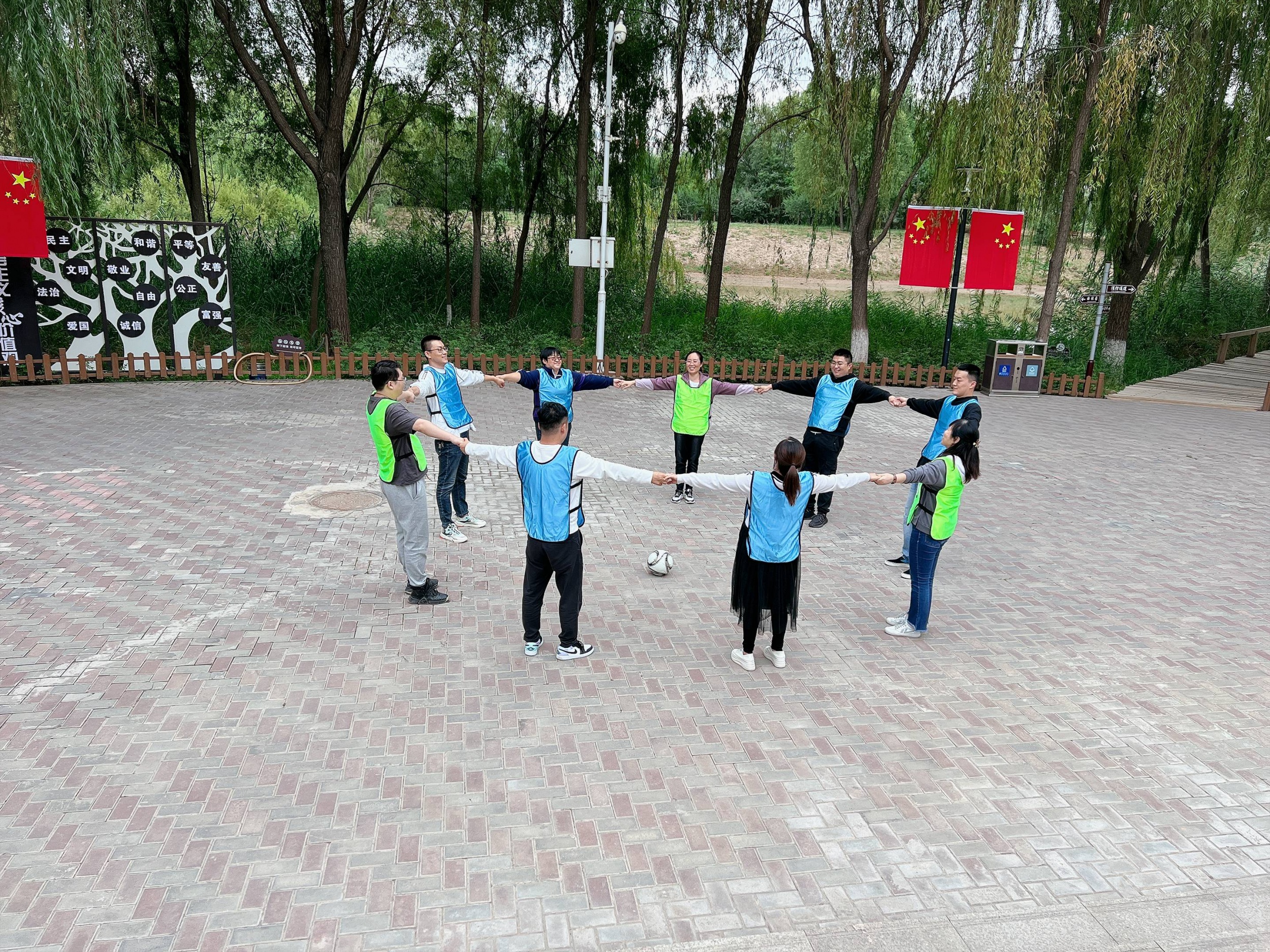 目標(biāo)一致,互相信任,手緊緊拉住,圍圈踢球,相互幫助,我們就能成為一個(gè)團(tuán)結(jié)的、具有強(qiáng)大凝聚力的團(tuán)隊(duì)。
