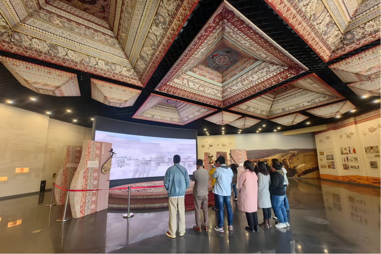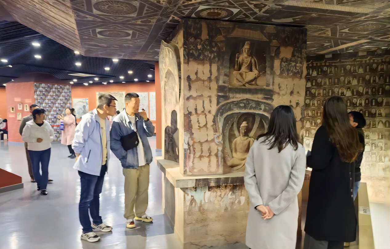 2023年10月23日,我公司組織員工在敦煌研究院蘭州分院敦煌藝術(shù)館內(nèi)參觀“覺(jué)色敦煌 莫高精神”敦煌石窟藝術(shù)展。走進(jìn)敦煌藝術(shù)館,無(wú)論是抬頭可見的藻井天花板,抑或是墻角邊印著莫高窟窟區(qū)的全景照片,每一處細(xì)節(jié)都被濃厚的敦煌元素所覆蓋。在這里我們可以不受外界打擾,在感興趣的壁畫前安靜地、耐心地去觀賞每一處細(xì)節(jié)。